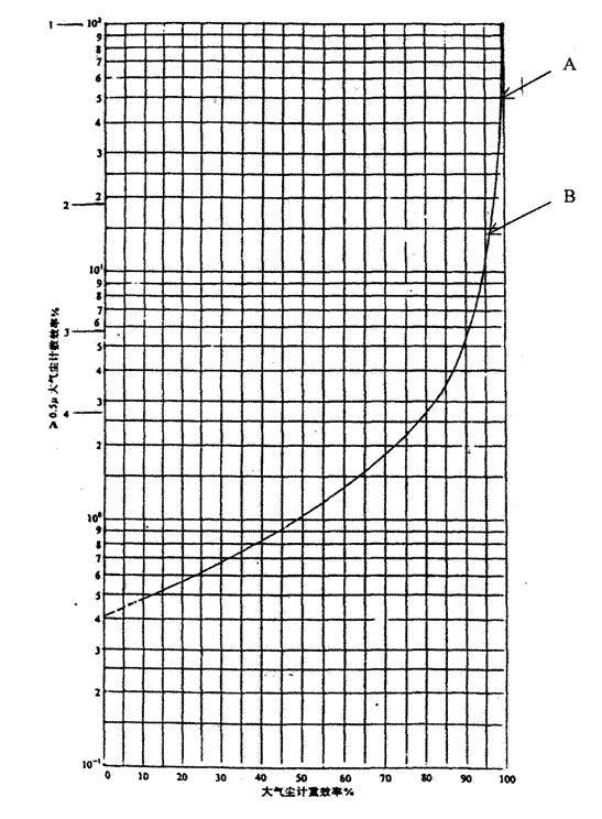 注:表中效率均是大氣塵分組計數效率(大氣塵分組計數效率是指以大氣塵為塵源,按≥0.3μm、≥0.5μm、≥O.7μm、≥l.0μm、≥2.0μm和≥5.0μm分組對過濾器進行計數效率的測定)。當大氣塵分組計數效率測定結果同時滿足表中兩個類別時,按低類別評定。 GB 12218-89 中規(guī)定I、II型過濾器效率亦可用人工塵計重法測試。